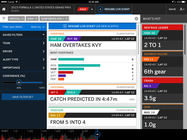 Displaying real-time live event streams for Formula One teams and Race Commentators.